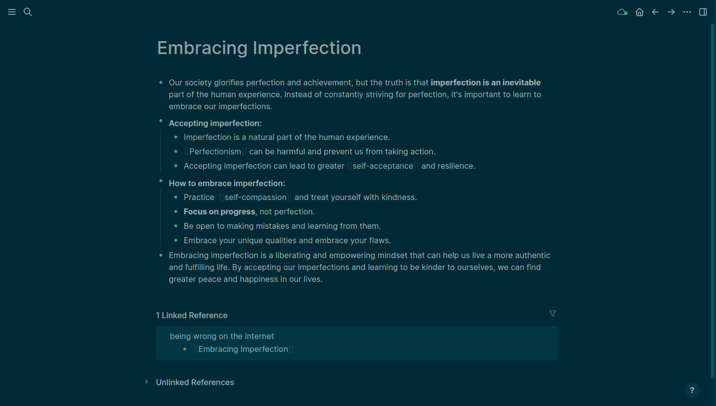- Bidirectional linking is more fluid here than elsewhere - connections emerge naturally rather than being manually managed